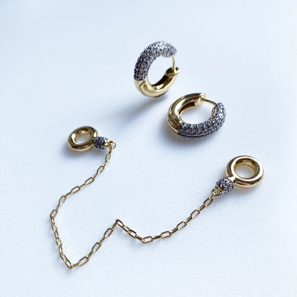 Zirkon taşlı, çift kullanımlı 2 cm küpe
