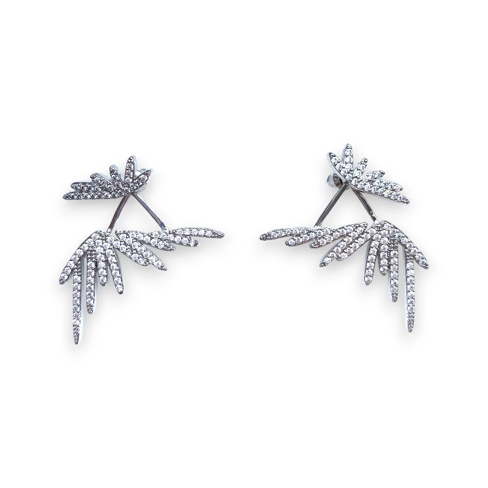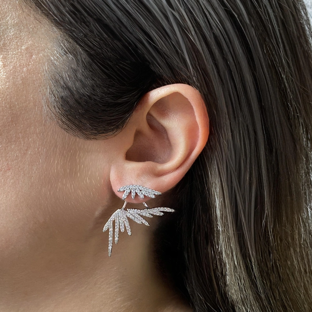 Zirkon taşlı, 4,5 cm çift taraflı küpe