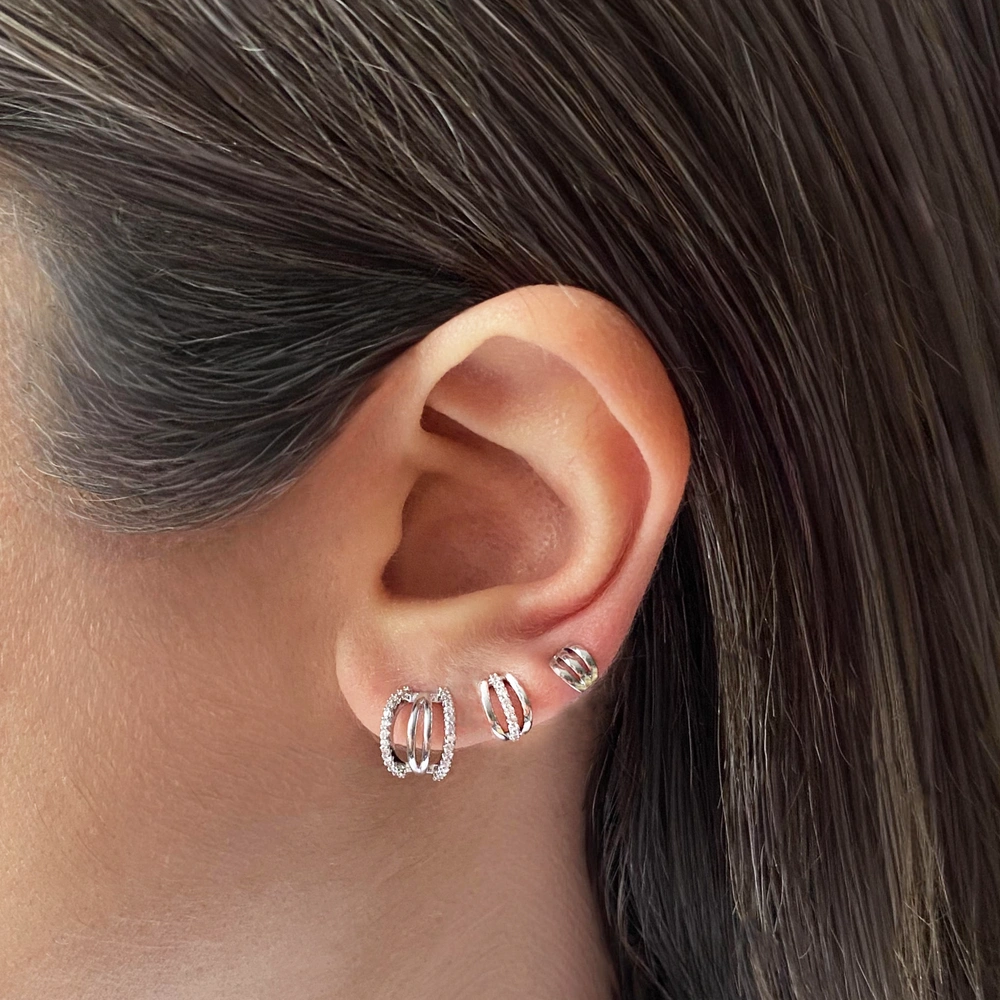 Arkası 925 ayar gümüş 3’lü küpe seti