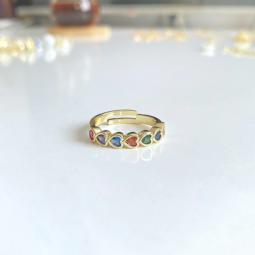 Zirkon taşlı, 14K altın kaplama, ayarlanabilir yüzük